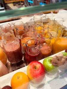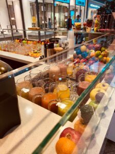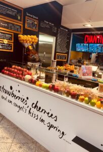 Das Inhaberpaar, Herr Pamsolak und Frau Savoi – zwei wundervolle Menschen, legen großen Wert darauf, dass die verwendeten Zutaten immer ganz frisch und qualitativ hochwertig sind. Zudem habe ich selten einen so hygienisch reinen Arbeitsplatz in der Gastro erlebt, wie hier. Auf Wunsch gibt es auch Saisonales oder Gemüsesäfte zu bestellen, oder aber einen bunten Obstsalat, den sie u. a. immer gerne für Sabrina Beate und Paula kredenzen. Und gut gelegen ist die Fruitbar (wie man sie auch nennt) zudem, im Herzen der Citigalerie, wo man nach einer ausgiebigen Shoppingtour nochmals so richtig Energie tanken und sich einen Frischekick holen kann.