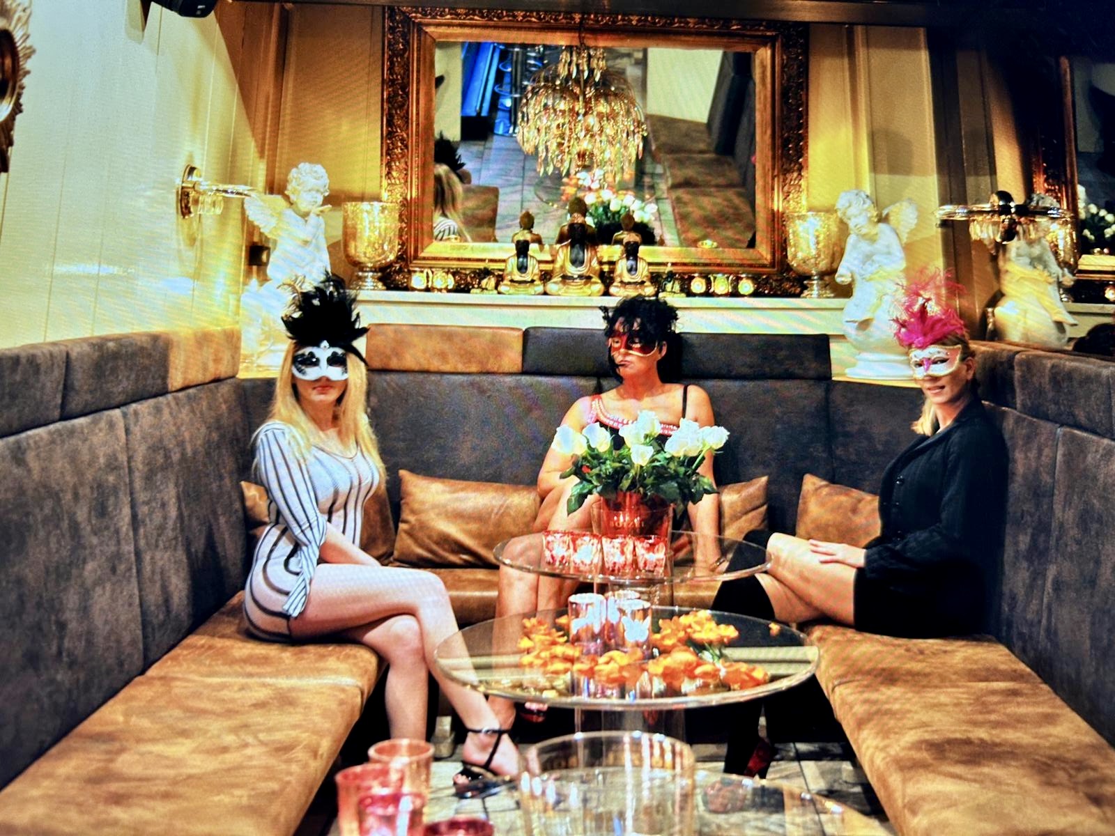 Nachdem die Herren in Empfang genommen wurden ging es direkt nach Innen, wo es einen Willkommensdrink gab und diese nun auch ihre Augenbinden abnehmen durften. Die Überraschung war groß. Die Bar war stilvoll geschmückt, es gab allerlei Köstlichkeiten zu essen und trinken und passende Ambientemusik im Hintergrund. Die Damen waren stilvoll verführerisch gekleidet.